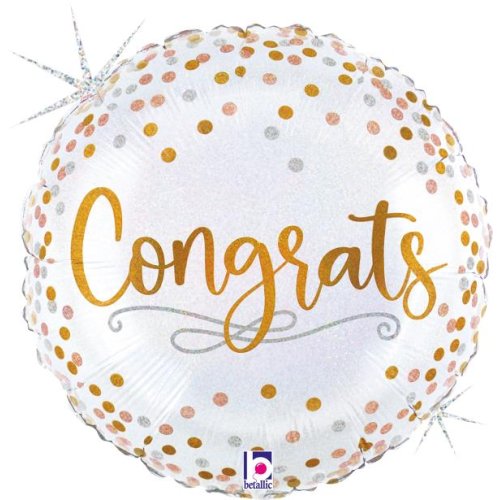 Congrats Confetti Foil Glit Holographic 18inch Round P1