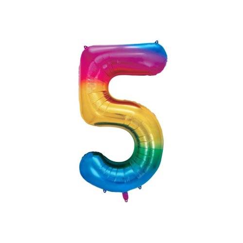 Party Deco Foil Balloon Number #5 86cm Rainbow 1pk
